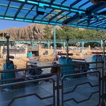 ディズニーシーのアトラクション。コースは二手に分かれていて、どっちに進んでもいいですよと言われ、左手に進みました。左は、人に見られるので、あまり見られたくない人は右の方が良さそう。