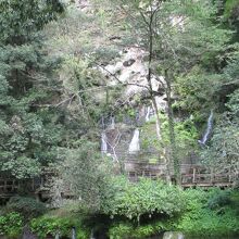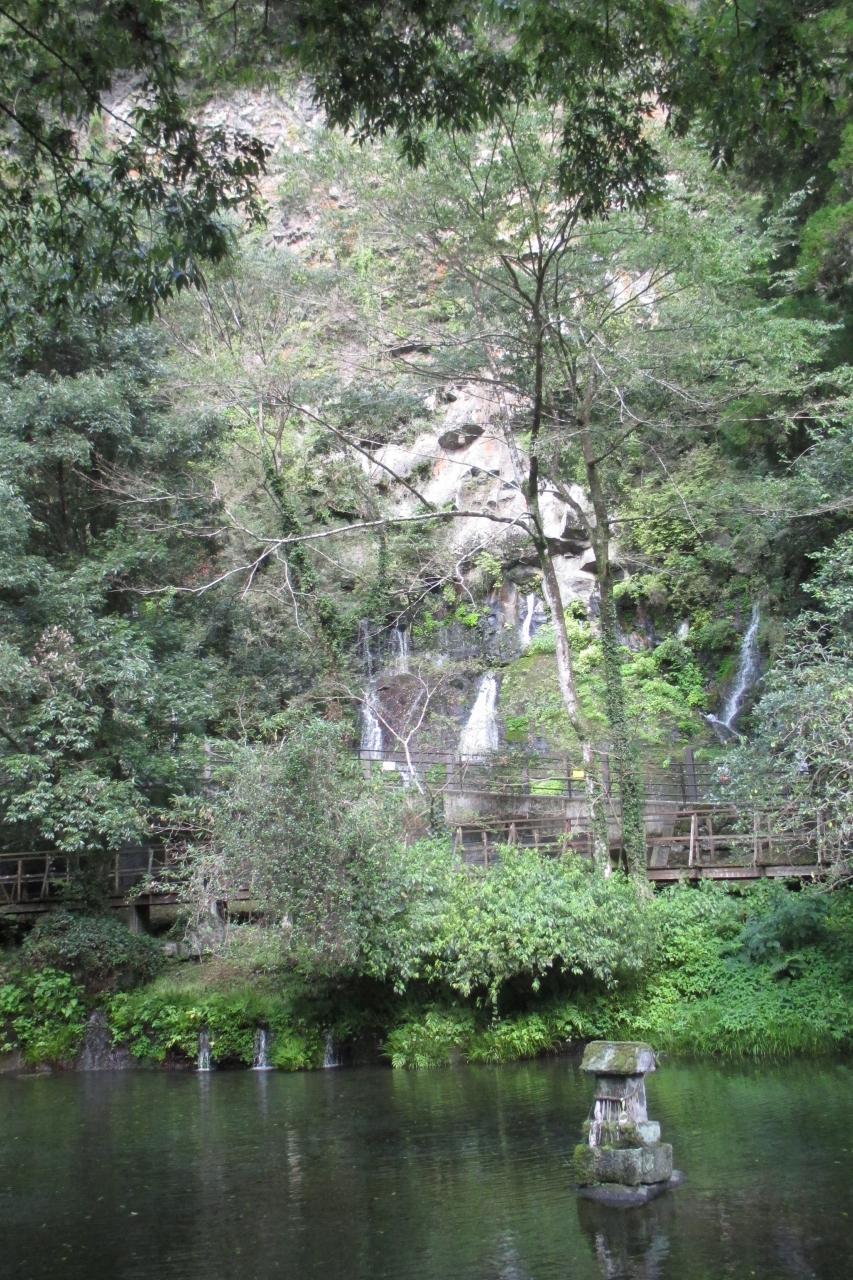 おのころ池後方の崖に玉垂の滝がありました。高さ5m、幅15mと紹介されています。でも、良く見るとこれを滝と呼ぶのでしょうか。崖のあちこちから湧きだした水が流れ落ちていました。まぁ、その様子を表わして、玉垂の滝と称したのでしょう。崖から湧き出すほど水の多いところだということでしょう。