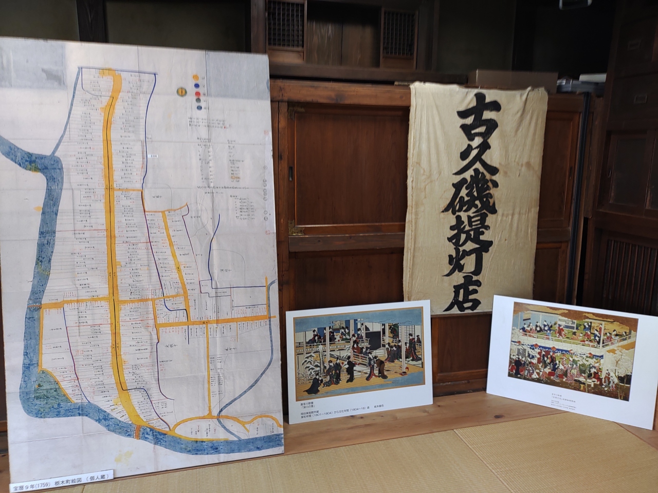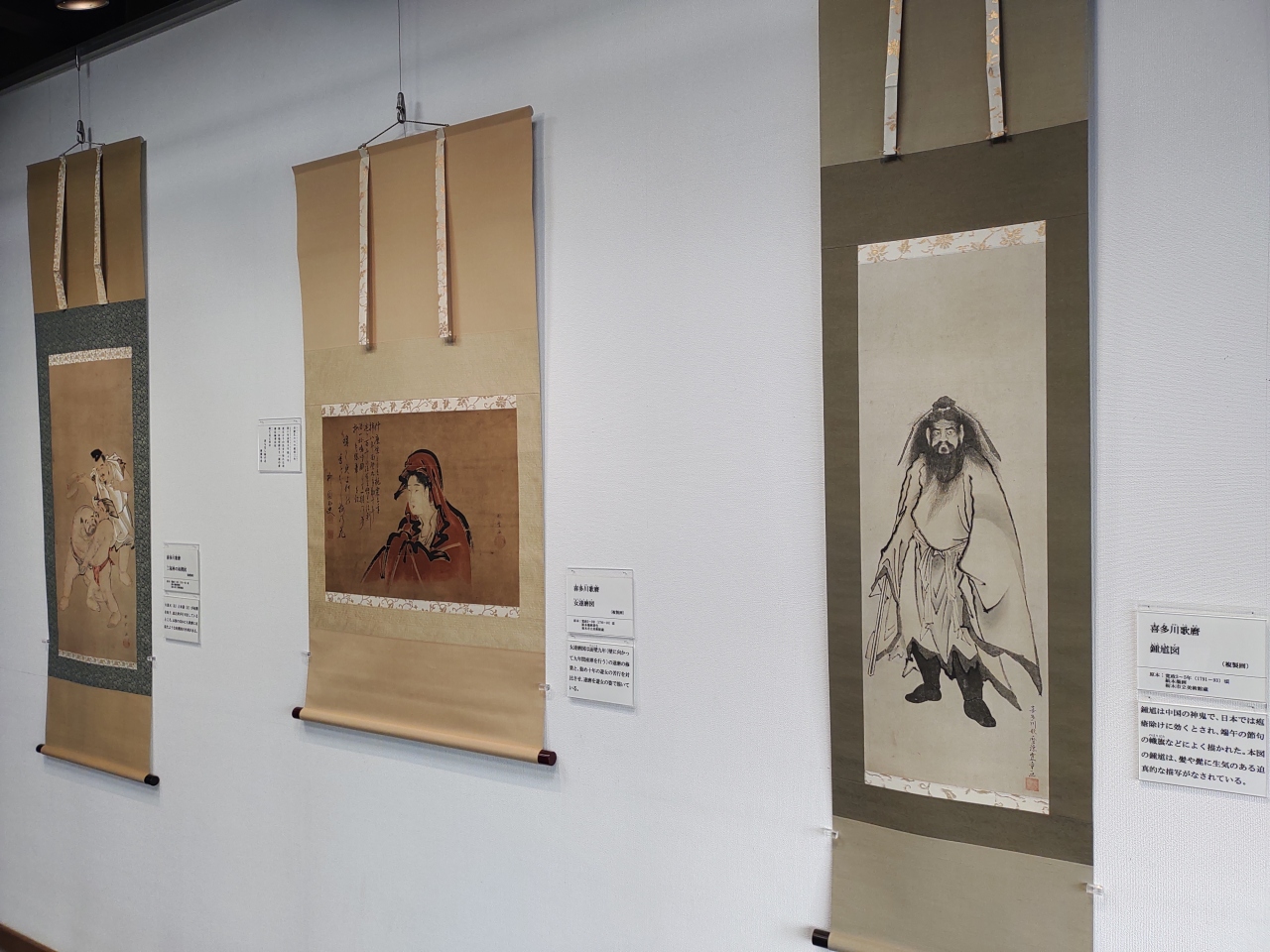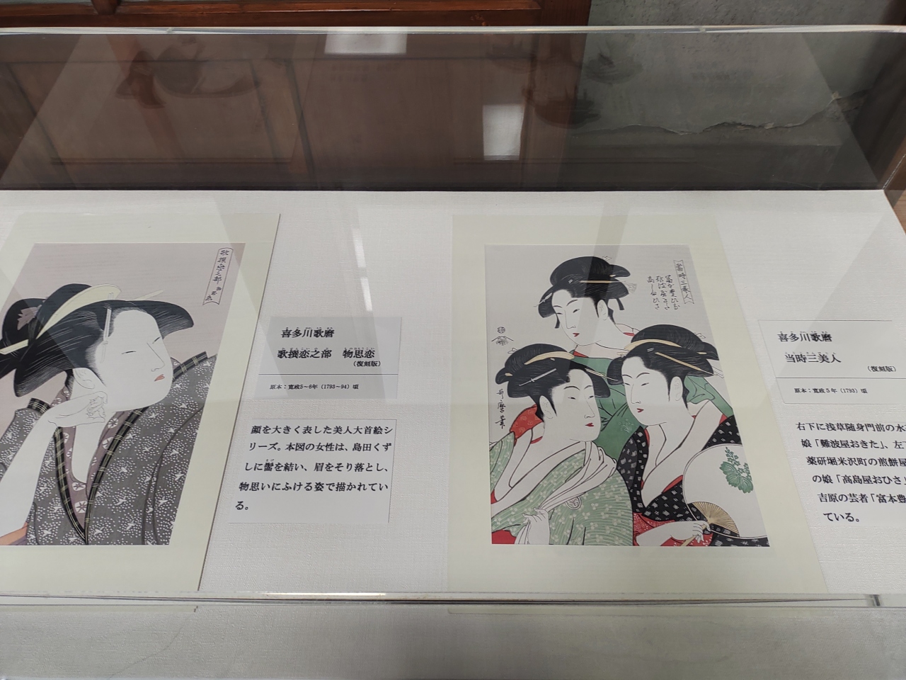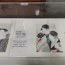江戸時代中後期に活躍した浮世絵師の喜多川歌麿さんが、栃木の名家にいた際に描いた絵などが飾られています。きれいでした。また、品川の月、吉原の花、深川の雪の写真もありました。本物はアメリカに渡ったそうです。職員の方が親切にいろいろ教えてくれました。