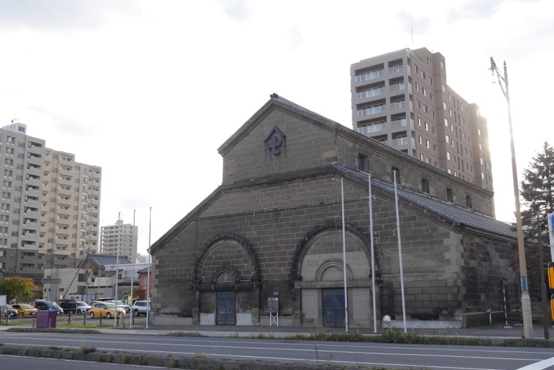 小樽市街に一体いくつあるんだ?と思わずにはいられない、紫色のパネルのついた建物、「小樽市指定歴史的建造物」。それらにはすべて番号が振り分けられていて、主要なものだけでも508もあるとか…。そのナンバリングの堂々たるナンバーワンがこの旧大家倉庫です。石川県出身の大家さんが建てたことが名前の由来。どことなく教会っぽいフォルムをしているなと感じました。