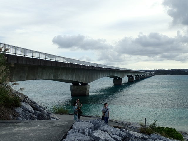 レンタカーで訪問しました。あいにく雲が多かったのと夕方近かったので少し暗めの写真ですが、晴れた日は景色が良いと思います。結構距離が長い橋ですが、無料です。橋を渡ったところにビーチがあります。美ら海水族館などとセットで観光するのが良いかと思います。