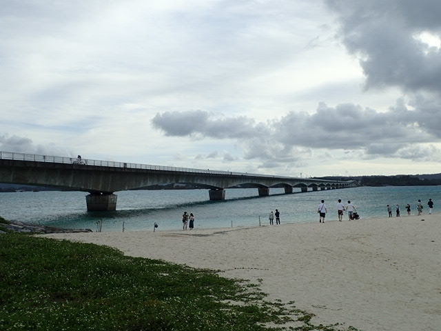 古宇利島に橋を渡ってすぐ左側に駐車場があり、そこに車をとめてビーチに行けます。カヤックやシュノーケルなどのアクティビティがあるようですが、私が行ったのは夕方近かったため、撤収済のようでした。橋も見えるし景色は良いと思います。