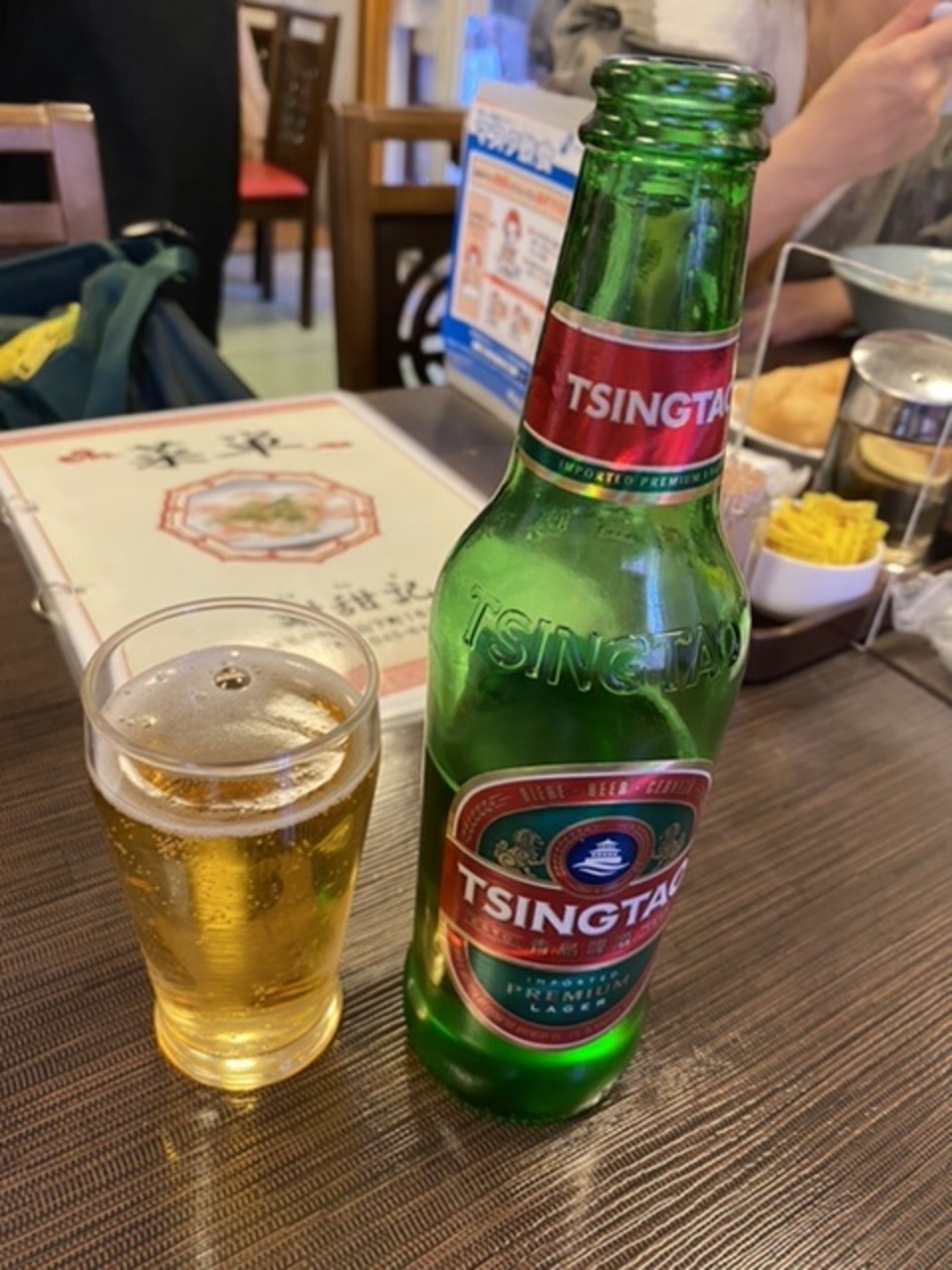 先ずは青島ビール、そして焼売にピータンスタミナ粥!粥はヤウチャッカイと共に。美味しいですね。