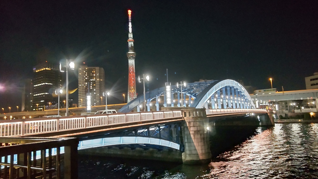 駒形橋は、隅田川に架かる橋の一つで、東京都道436号線(浅草通り)が通る橋です。浅草寺の駒形堂の近くにあります。現在の橋は、昭和2年(1927年)に架けられた橋長149.6m、幅員22mの鋼アーチ橋です。隅田川には、いろいろと特徴ある橋がありますので興味がある方は、巡られては如何でしょうか。