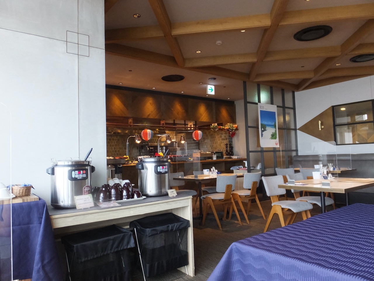 キングスカイフロントの東急ホテルの最上階。多摩川越しの羽田空港の見晴らしが素晴らしいです。窓側の席は少ないですが、夏は多分、テラスも使用されるのではないかと思います。