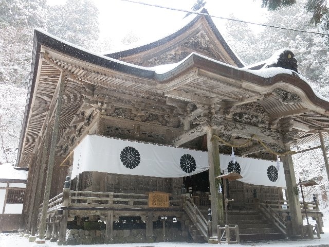 寺院建築様式の本殿には神仏習合時代の面影が残っているほか、精巧な彫刻も注目に値すると思います。