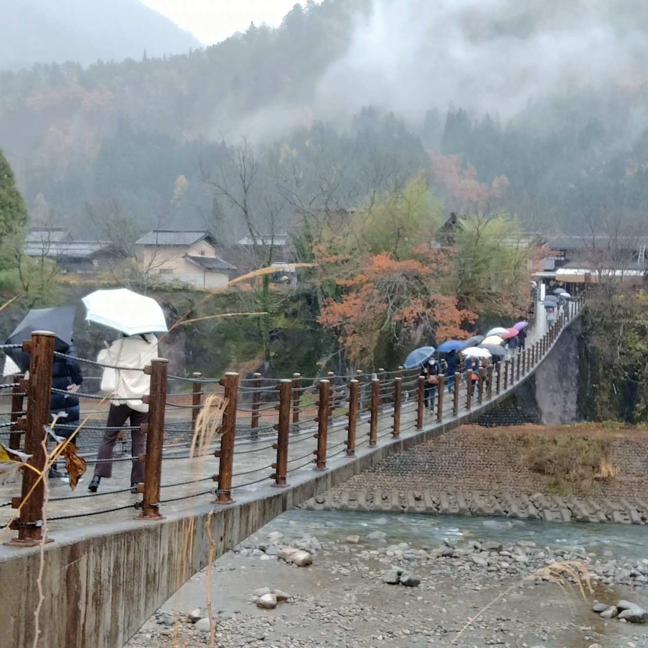出会い橋を渡ると、生活感のある多くの合掌集落が並び、一般公開されたり民宿としたりしていました。