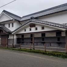 白い壁の重厚な武家屋敷か蔵のような登録有形文化財