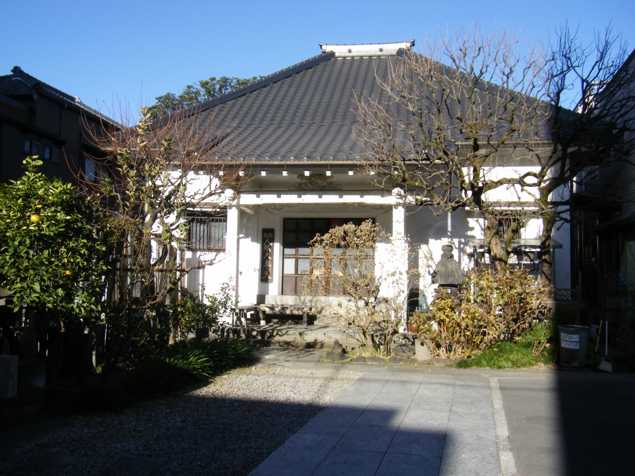 2020年12月に日暮里~谷中周辺を散策した際に立ち寄りました。谷中霊園南側の善光寺坂沿いにある日蓮宗の寺院で、今から400年程昔の寛永7年(1630年)に創建されています。境内には入るとこじんまりとした感じの本堂がありますが、白塗りのコンクリート製?のような建物で、やや近代的な印象を受けました。あまり観光要素は感じられない寺院ですね。この辺りには寺院がたくさんありますので、その違いを見て回るのも楽しいかと思います。