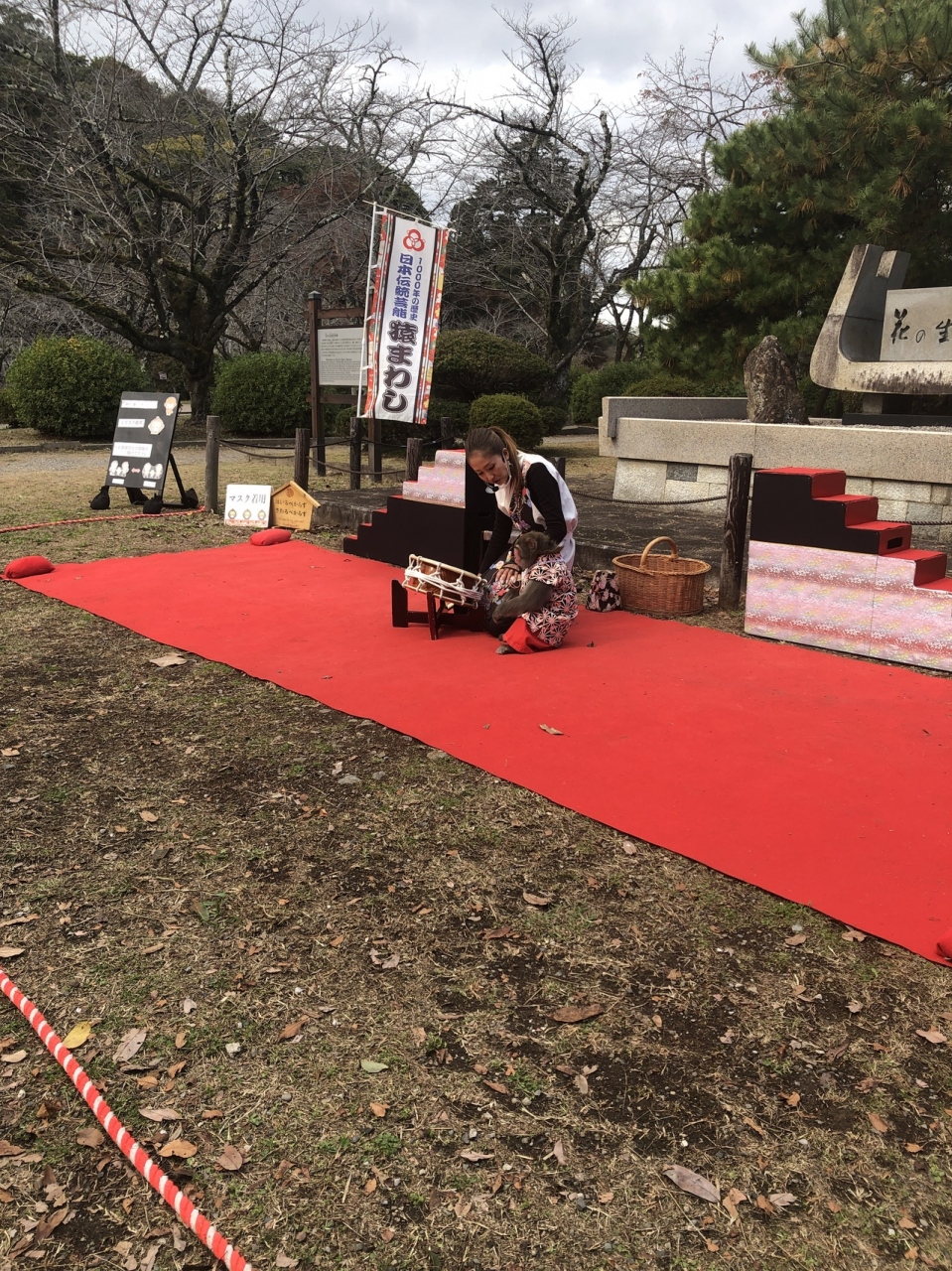 11月の祝日だったからか、猿回しをされていたり、リンゴ飴、たこ焼きの屋台もありました。