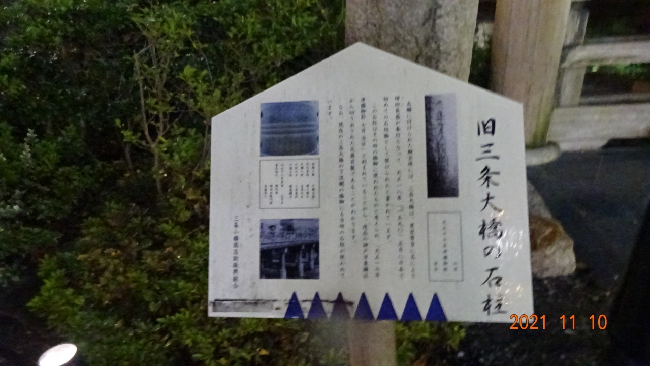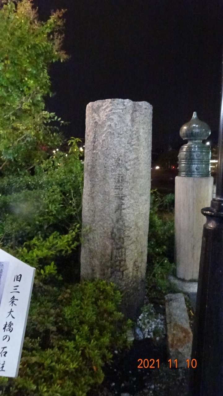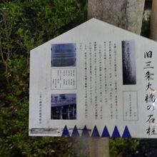 案内板によると、豊臣秀吉が三条大橋を改修した時の石柱のようで、歴史的には価値のある石柱のようです。