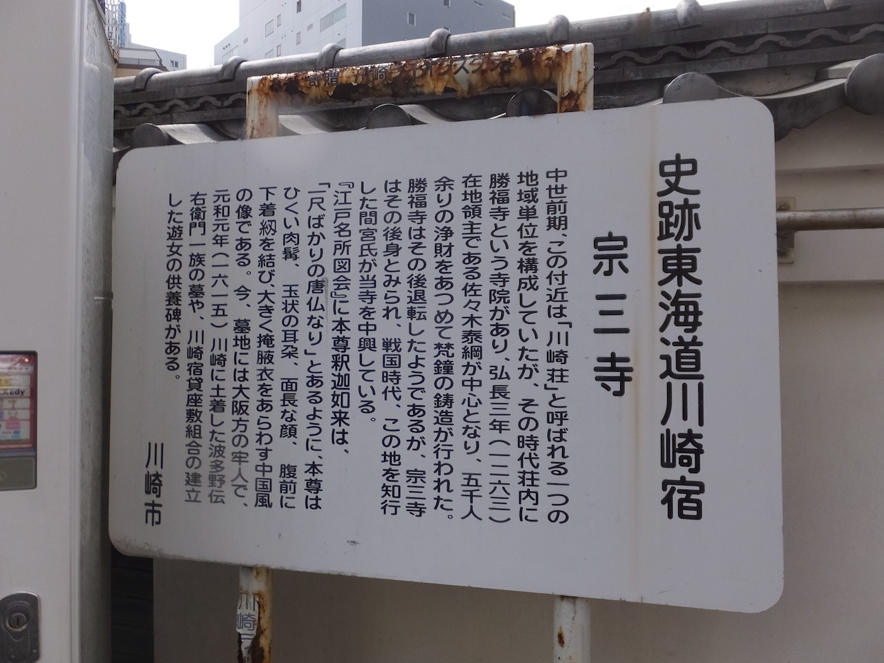 京急川崎駅の大師線ホームの裏側になります。旧東海道に面してはいますが、本堂などはかなり奥に入ったところにあります。案内看板には遊女の供養碑があるとのことでしたが、墓地の片隅にあるようですが表示はなく、どこにあるかはわかりませんでした。帰宅後に調べたところ、左奥の角のようでした。次回訪問するときは手を合わせたいと思いました。