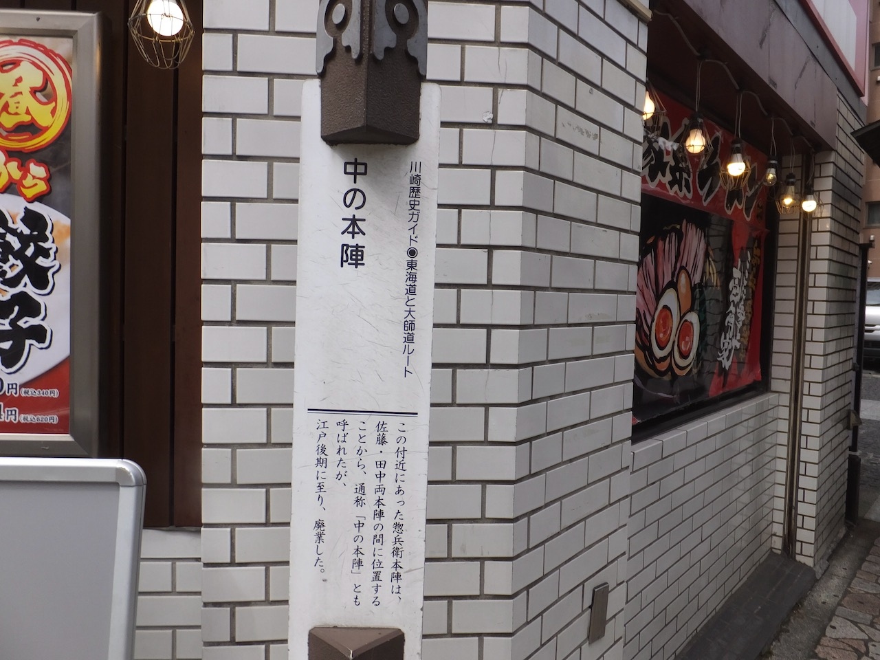 旧東海道の川崎宿の街歩き。当時の建物は何も残ってないので案内板頼りです。この中の本陣あとは看板がものすごく小さく、柱のみ。3つあった本陣の跡地の案内板が絵入り・写真入りなのに比べてすごく簡素。なんと江戸後期には廃業していたのだとか。まあ、江戸と川崎の間は歩いても4〜5時間でしょうからこの近距離では宿泊業だけでは商売はなりたたなかっただろうなあ、とは思います。