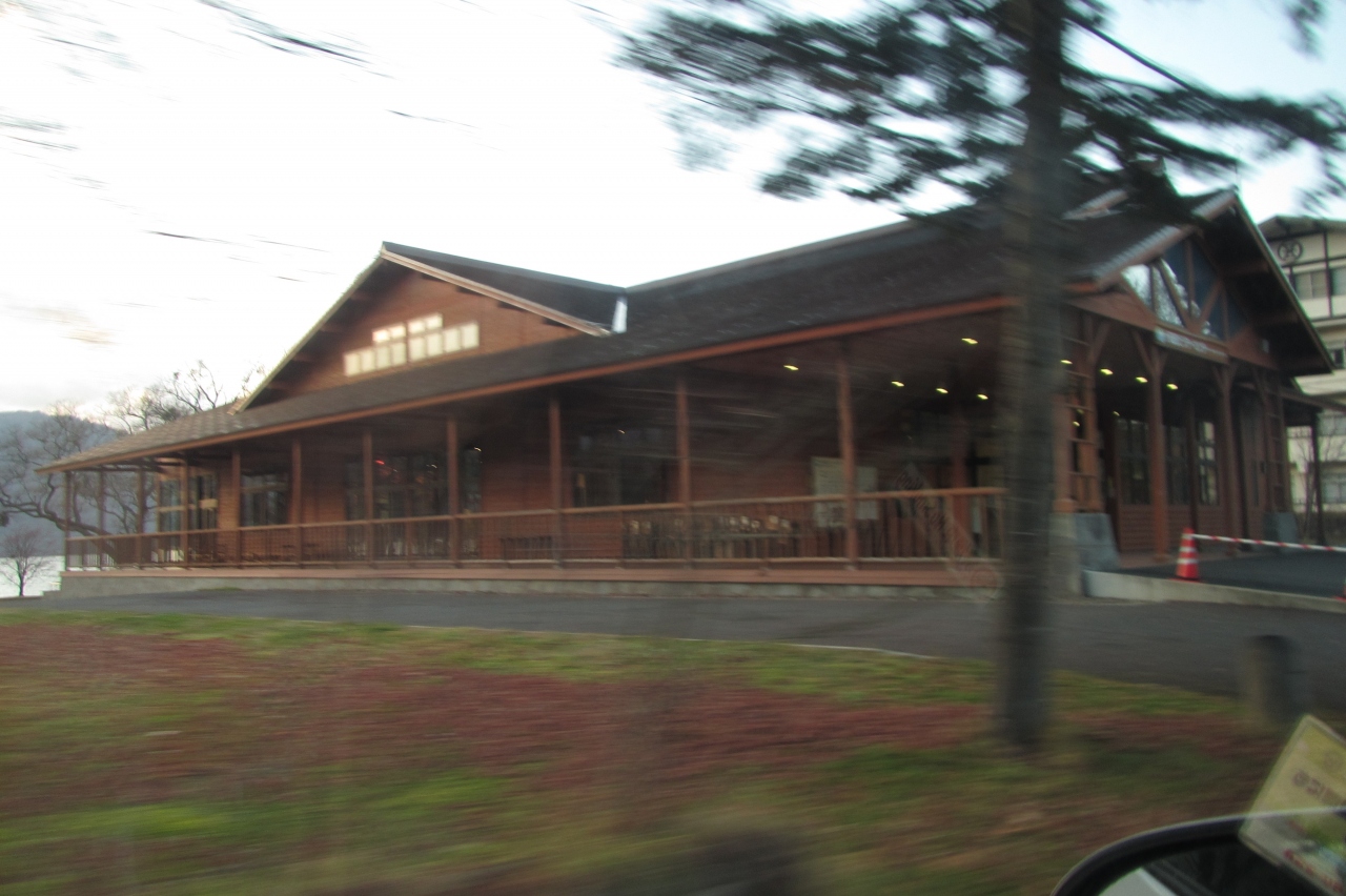 十和田湖の休屋の手前ぐらいに大きな木像のログハウスのような建物があり