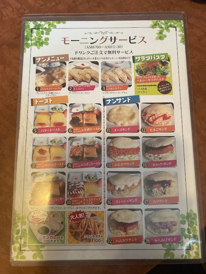 ナンのモーニングサービスがあります