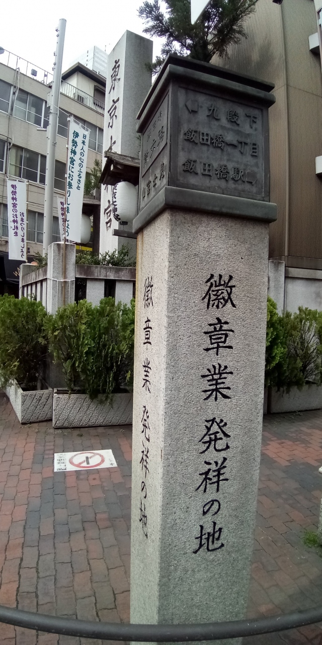 徽章業発祥の地の立派な石碑が、飯田橋駅周辺にあって、このエリアが歴史的にもたいへん重要であることをしみじみ感じました。主要道路の歩道にこの碑が堂々と立っているので見つけやすく、見逃せない観光アトラクションだと思います。