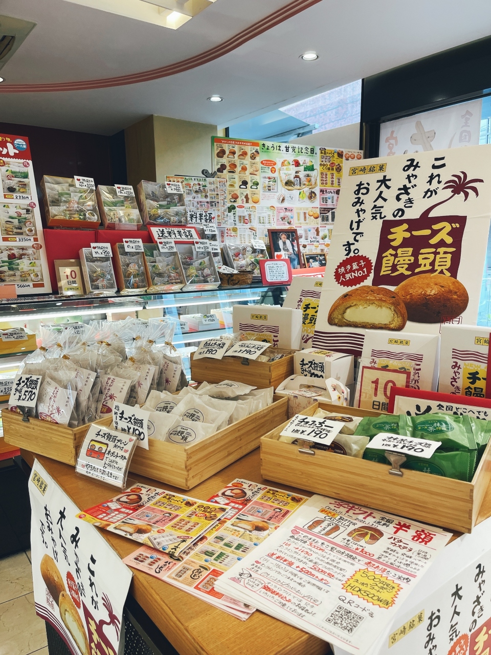 看板商品である「チーズ饅頭」は宮崎の定番のお菓子なのですが・・・ココは5種類の味があるので色々と購入してみたよ〜「プレーン」に「抹茶」に「チョコ」に「つぶあん」に「白あん」にと色々な味が楽しめます!特に「チョコ&チーズ」の組み合わせは美味しかったです。