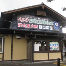 ASO田園空間博物館総合案内所は、道の駅の中でも、もっともJRの阿蘇駅に近いところに建っていました。(駅前ロータリーに面している感じです)車の利用者だけでなく、鉄道の利用者とも兼用の施設となっていました。この総合案内所の中には、靴を脱いで寛げる広い(48畳)休憩室がありました。こういうスペースは珍しいと思います。