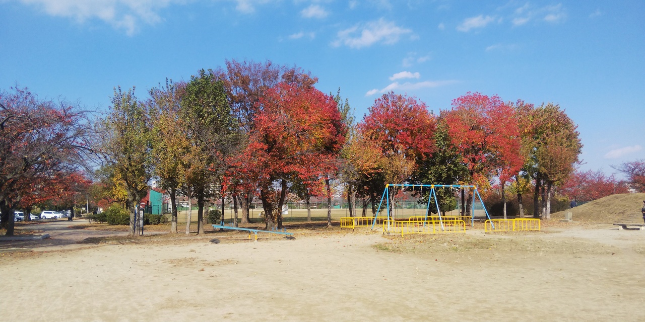 白鷺公園は堺市にある少し広めの公園です。堺市の花・ハナショウブが約200種、1万株あり、梅雨時期には色とりどりの花が咲きます。今回は11月に行きましたので、紅葉がちらほら見かけることができました。遊具や野球場などもあります。