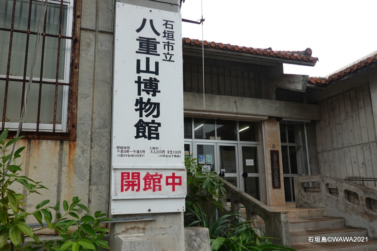 竹富島から石垣島(離島ターミナル)に戻り、道順も良かったので、ホテルにチェックインする前に、建物前の無料駐車場にレンタカーを停め、石垣市立八重山博物館に入館(大人200円)しました。