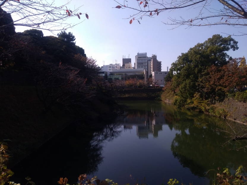 「高燈篭」の先に「千鳥ケ淵」がありました。都内屈指の桜の名所ですが、今回は花の季節ではなかったので、ボートで遊んでいる人もおらず、とても静かな雰囲気でした。やはり桜が咲いている時期にお花見で来たいと思いました。