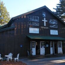 軽井沢会テニスコートの近くにある超教派教会堂。1918年に現在の建物が完成した。