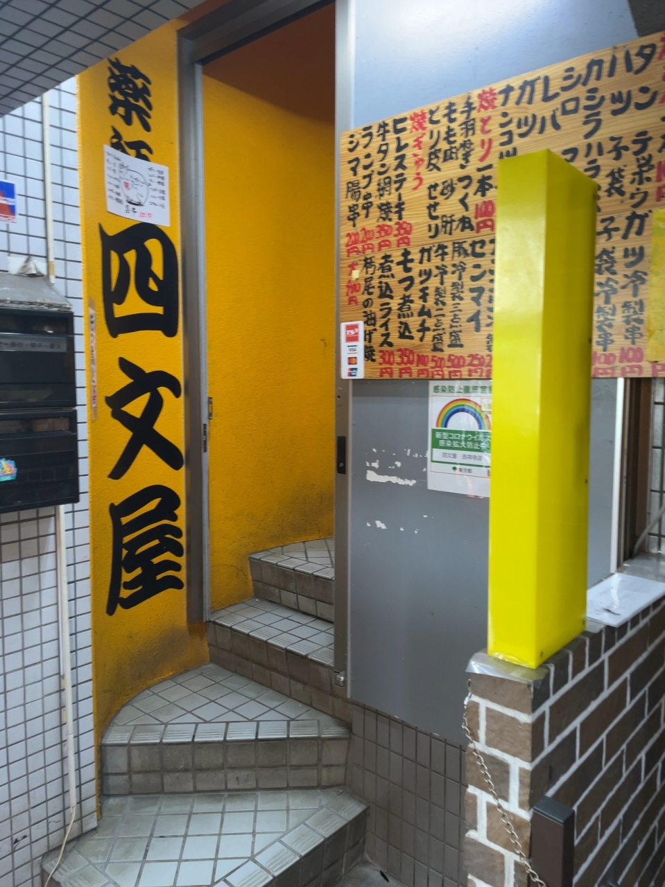 今では都内どこに行ってもよく見かけるようになった四文屋の吉祥寺店です。入り口も写真のように狭く、店内もなかなかお客さんが入っており賑わっています。以前のようにワイワイ楽しく飲み食いできることが出来るようになれば、また訪れたいと思います。