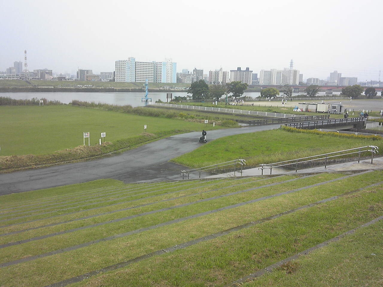 お花茶屋にある自転車店で自分の自転車をピックアップし、堀切を経由して、この荒川を西新井橋で渡りました。
