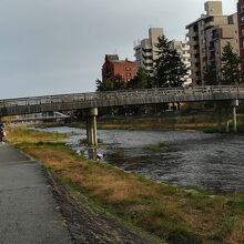 浅野川にかかる橋です。階段を上がって渡ってみましたが、何か雰囲気が良くて温もりがあります。