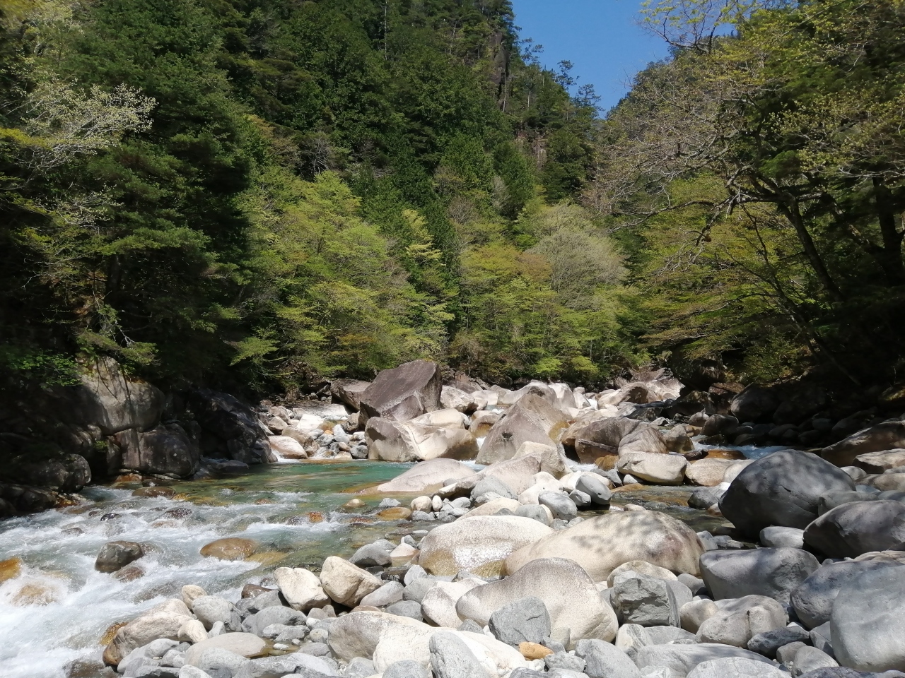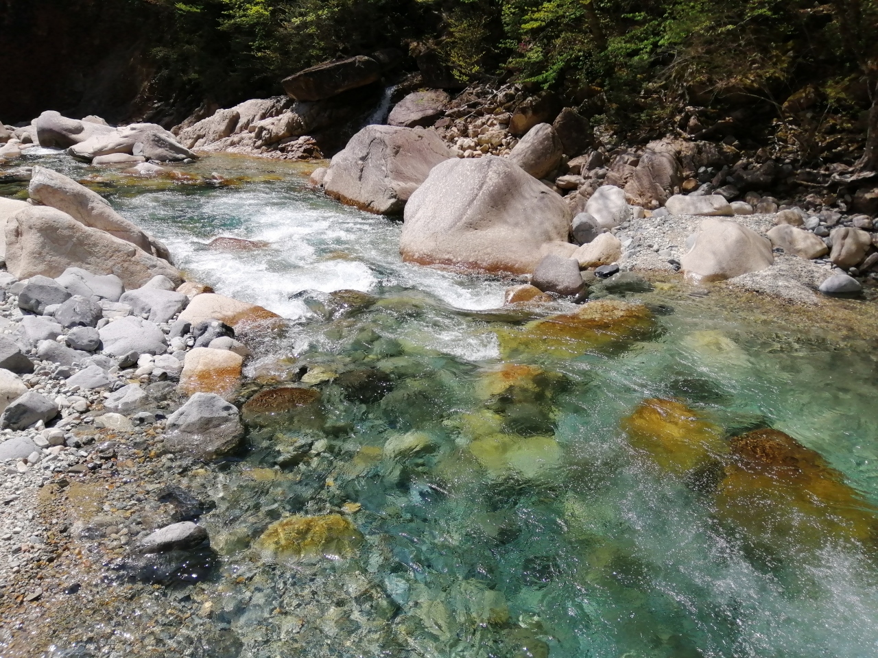 キャンプ場までは行かず、途中で川に下りて楽しみました。