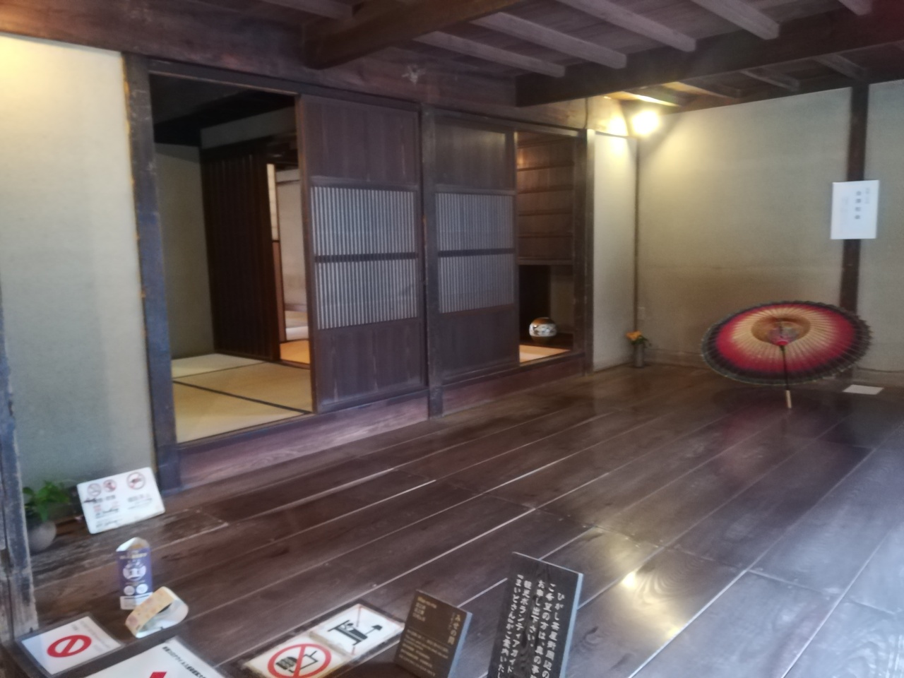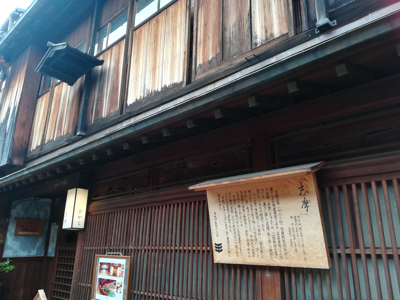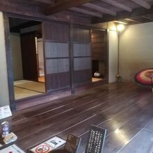 ひがし茶屋街の入り口近くにある休憩所です。江戸時代に建てられた町家を復元していました。当時の人々の暮らしが感じられる施設で館内には、観光案内のパンフレットなどが置いてありました。観光ボランティアの、まいどさんがいらっしゃり、