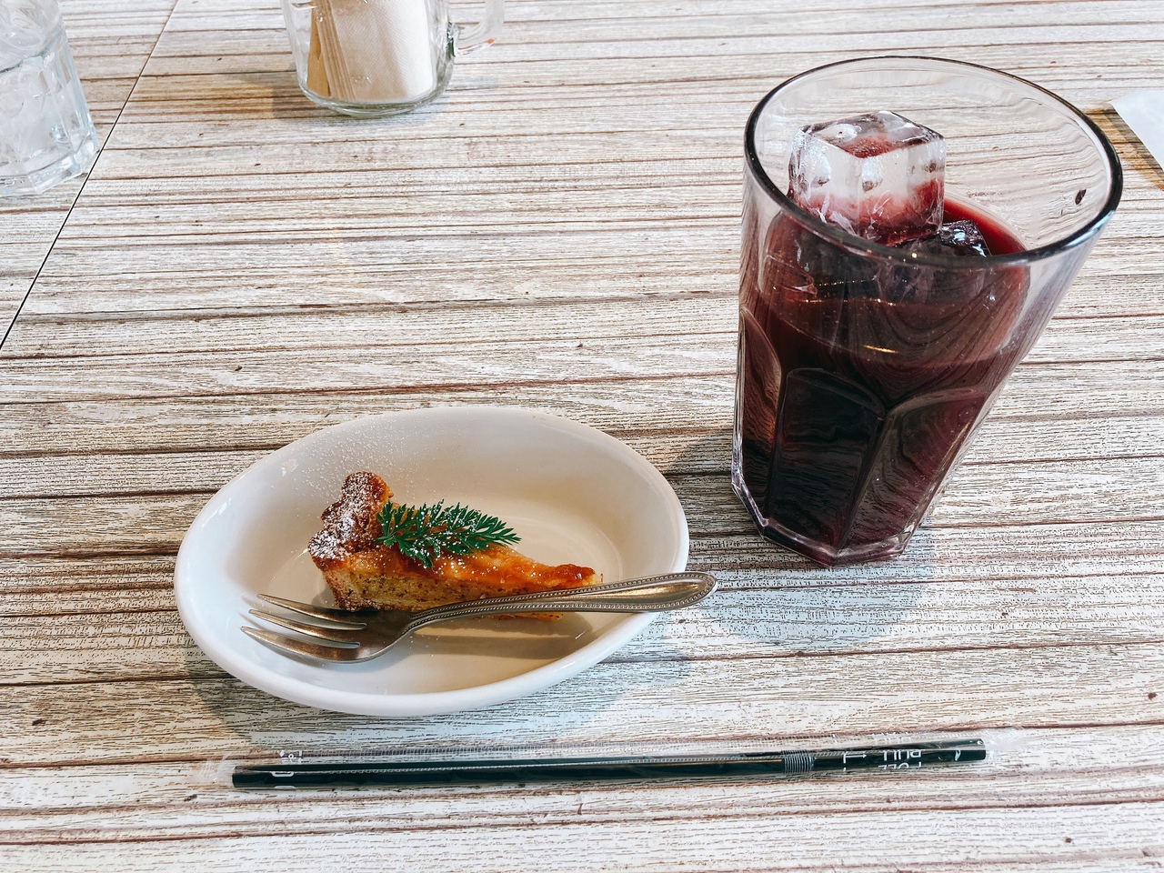 プチデザートはリンゴのタルトかな?アサイージュースも含めてポーション小さめ。これまた女子サイズ。