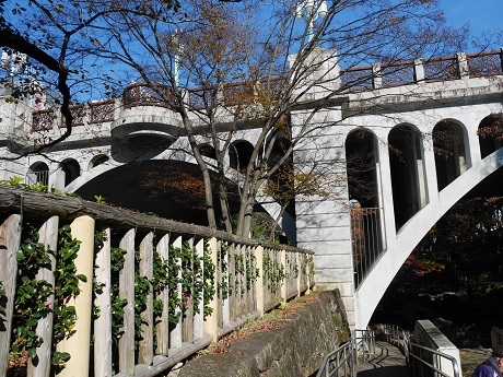 王子駅の程近い場所に有る音無親水公園内にコンクリート製のアーチ橋が架かっていますこれが音無橋です。昭和4年の12月より工事が始まり昭和6年1月に完成した橋ですがこの工事には日本経済に大きな功績を揚げた渋沢栄一氏が大きく拘わっています。橋下の公園は春の桜・秋の紅葉と見応え有る場所です。