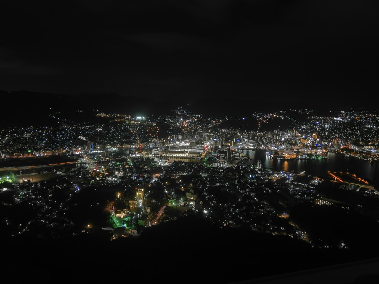 世界新三大夜景と言われているこの長崎、やはり素晴らしい夜景であった。 通常はロープウェイで登る方法もあるが 中腹の駐車場に車を止めてケーブルカーで登るというアクセスもある。また、バスも運行されているようである。 私は ホテルからタクシーで 山頂のこの展望台まで横付けで、きましたが 駐車場の台数が限りあるため 平日の夜でもありながらその際10分少々待たされました。 土日は一体どのぐらい待たされるのであろう?( 商業車は考慮してスルーさせてもらえないのだろうかと考えてしまった)しかし 展望台は結構な混雑と見込んでいたが、ほとんど人がいなく ゆったりと夜景を楽しむことができました。 11月の下旬でありながらも かなり 風も冷たく寒いので防寒の準備は必要である。