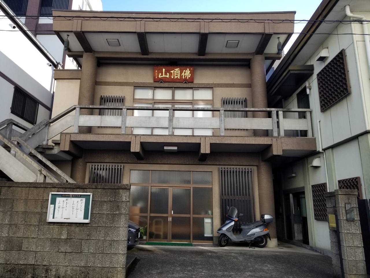 建物は2階建てのコンクリート造りで、いわゆるお寺らしい外観ではない。現代的な建造物になっている。