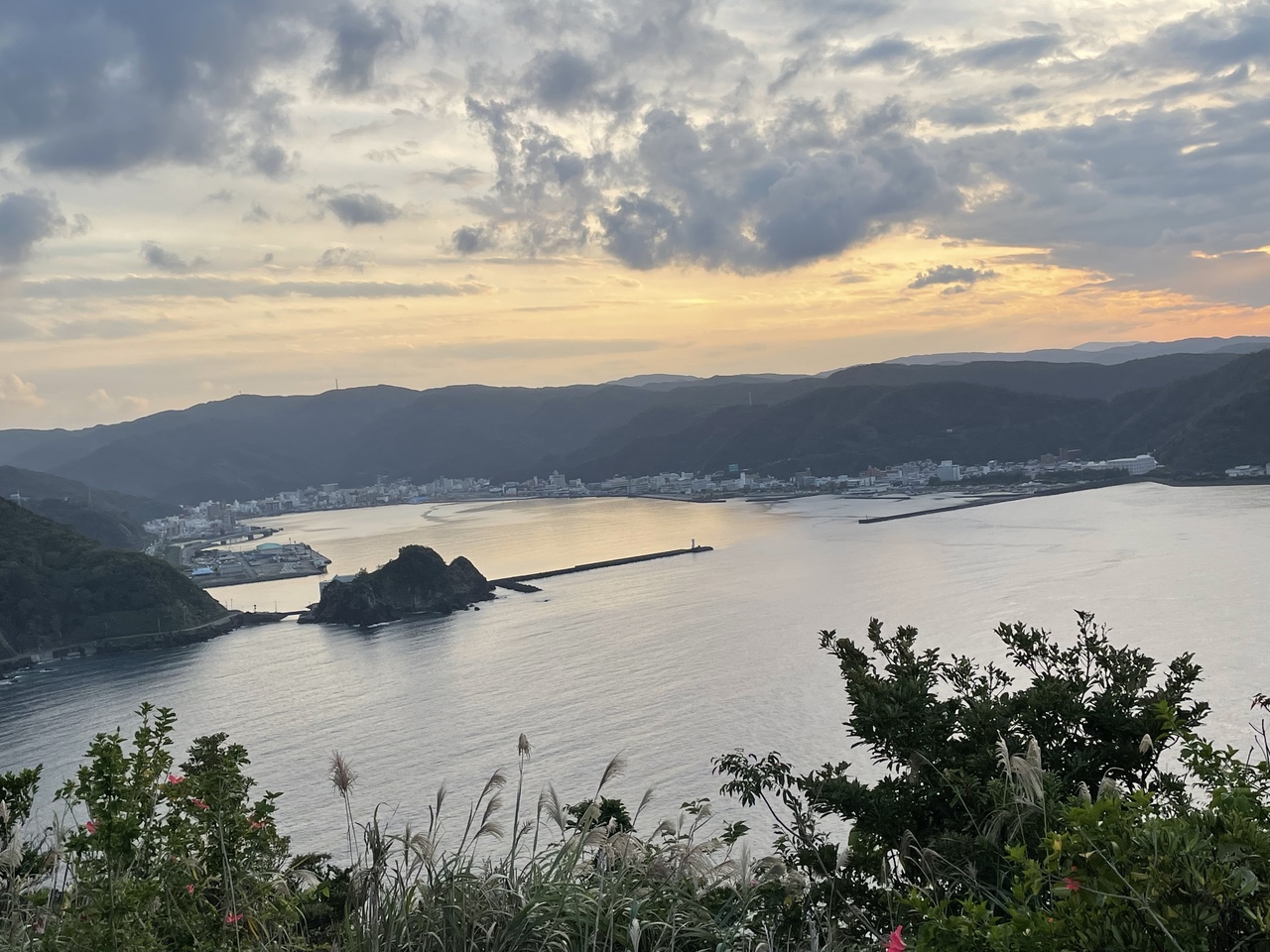 名瀬の市街地が反対側から見渡すことが出来ます。大熊はカツオ漁の港として栄えていたそうです。夕日が見たかったのですが、訪れた日は夕方から雲が出て残念ながら夕日は見れませんでしたが、名瀬の港がよく見えて中々の絶景です。