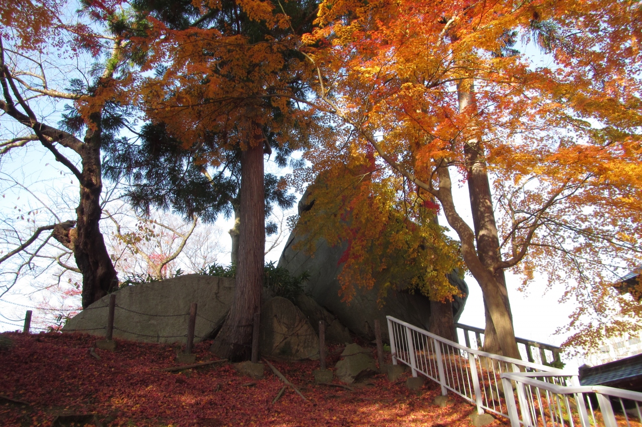 盛岡城跡公園にある桜山神社の建物の後ろにある烏帽子の形をした岩です