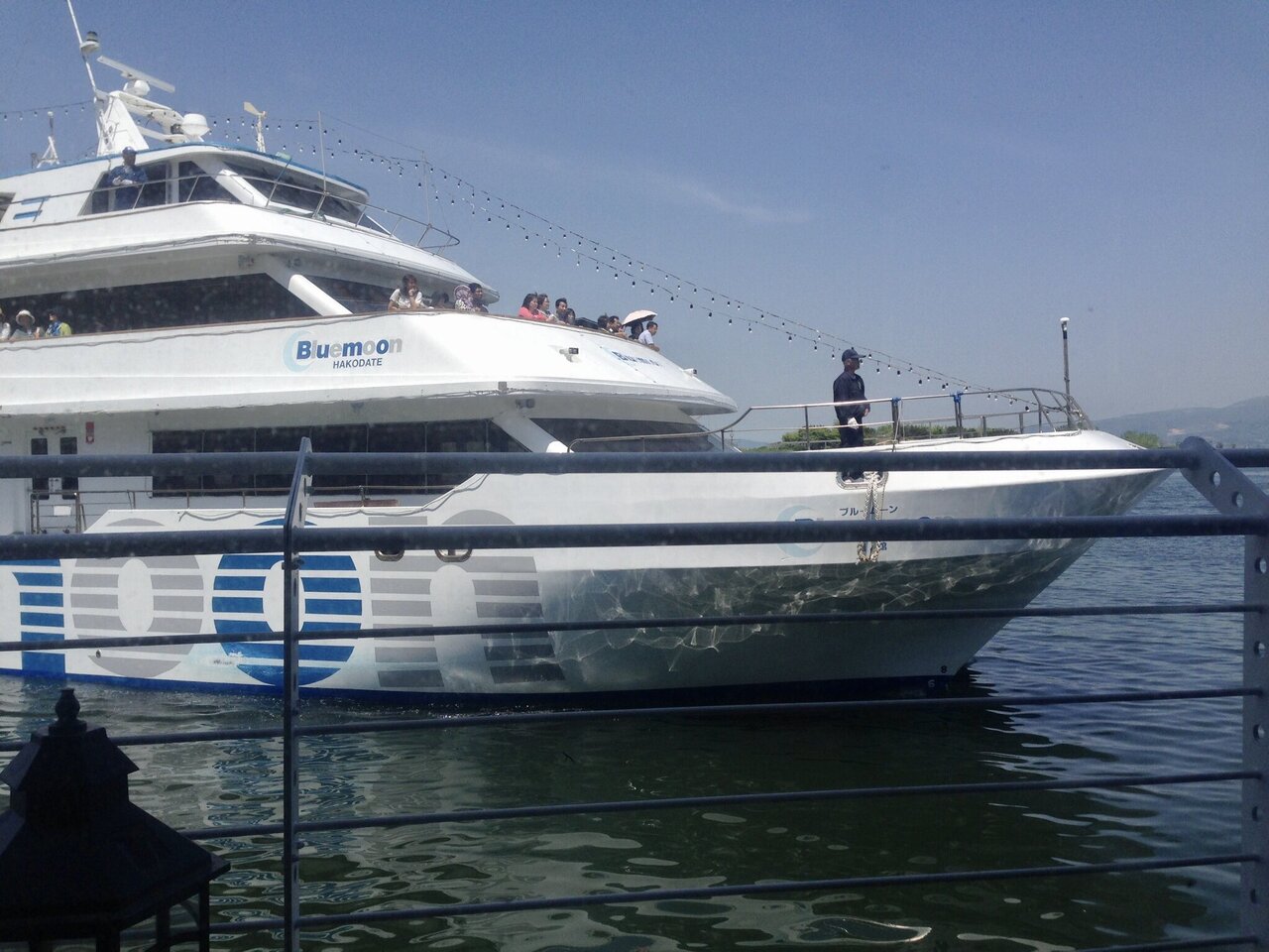 観光遊覧船ブルームーンに乗船しました。函館港内一周クルーズ30分コースです。ラッキーピエロベイエリア店から出港します。ラッキーピエロのハンバーガーや飲み物の持ち込み歓迎だそうなので、ハンバーガを持ち込み、食べながらのクルーズ、オススメですよ!料金は招待券利用なのでわかりません。
