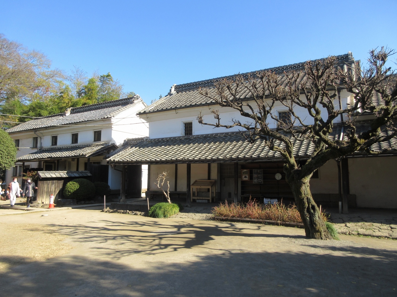 渋沢栄一生誕の地に、1895年に建てられた主屋を中心に、米蔵や藍玉の貯蔵庫として使用された土蔵が残っています。池のある庭には栄一の立像が建ち、孔子の墓所に生えていた楷の木の孫にあたる木も植えられています。裏には谷中霊園の渋沢家墓所内にあった、栄一の母と父の招魂碑、尾高惇忠の弟・平九郎の追懐碑も建っています。主屋では栄一の姿をしたアンドロイドも出迎えてくれました。観光バスもやってくる観光スポットです。