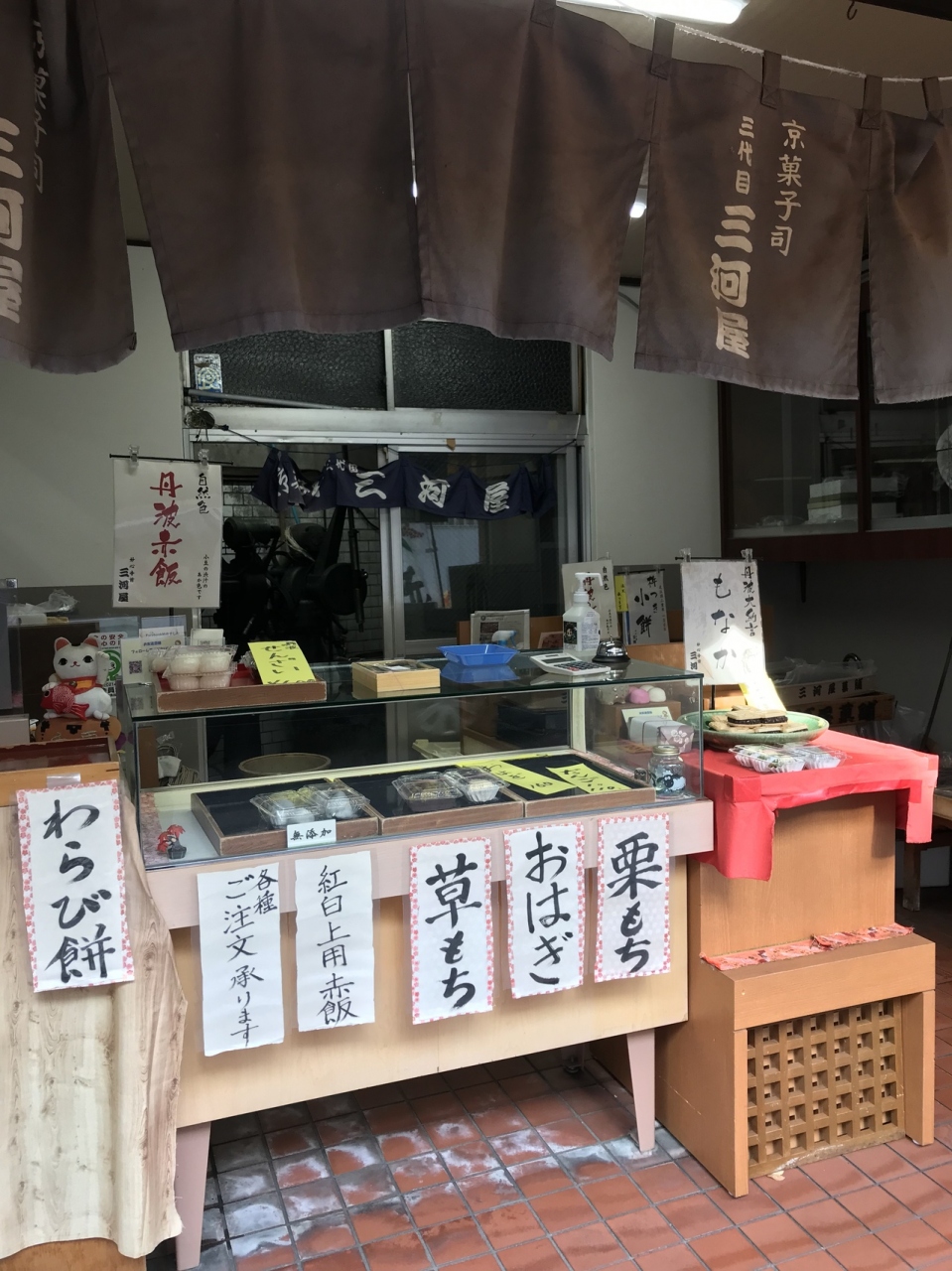 妙心寺の少し手前にある小さいながら老舗の和菓子屋さんで、お客さんも多かったです。いわゆる京都のおまん屋さんの雰囲気が漂うお店で、つい入りたくなりますね。栗まんや赤飯など色々ありますが、特に最中はあんこがギッシリで、特に心引かれる商品でした。