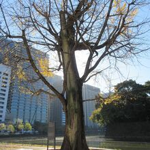 東西線・竹橋駅2番出口を出たところに造られている大手濠緑地に植えられています。かつて文部省構内にあり、関東大震災で周辺が焼け野原になったにもかかわらず、イチョウだけが生き残ったそうです。復興事業で切り倒される予定だったところ、中央気象台長の申し入れによって保存され、現在の場所に植えられているとのことです。太い幹に枝を広げ、たくさんの葉をつけた姿から力強さが感じられました。