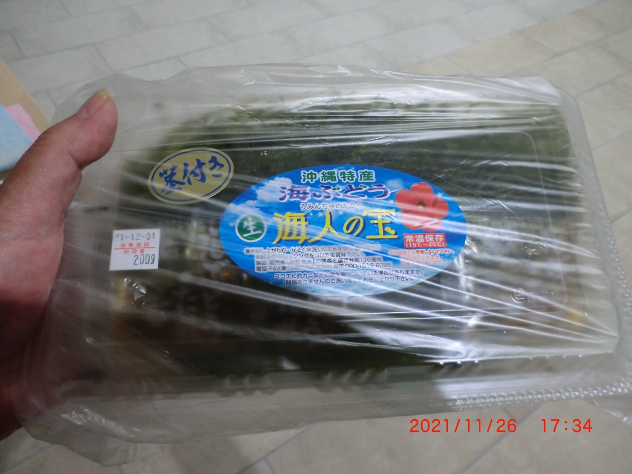私はここで「もずく」と「海ブドウ」を買い、晩飯の酒のつまみにしました。「海ブドウ」は連れの老夫婦+次女夫婦+孫共上手いと1パック食べきりました。