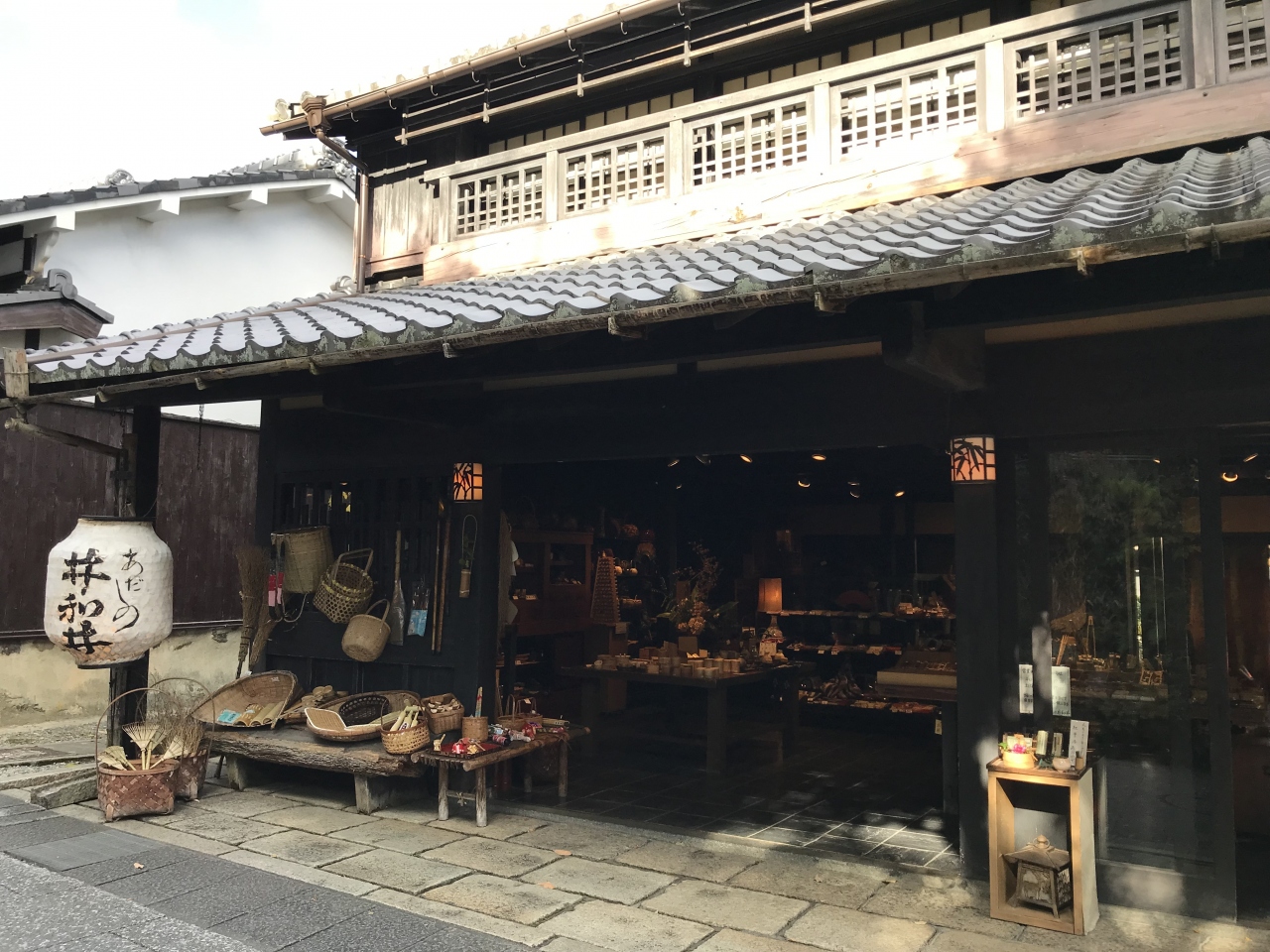 あだしの井和井は、嵯峨鳥居本にある竹製品のお店です。紅葉の名所として名高い化野念仏寺の石段下にある旅籠を改装した侘びた風情のお店です。観光の散策途上で立ち寄ると、おいしいお茶を頂ける気の利いたお店です。竹細工の他に、お香や和雑貨など京都らしい物が沢山ありました。