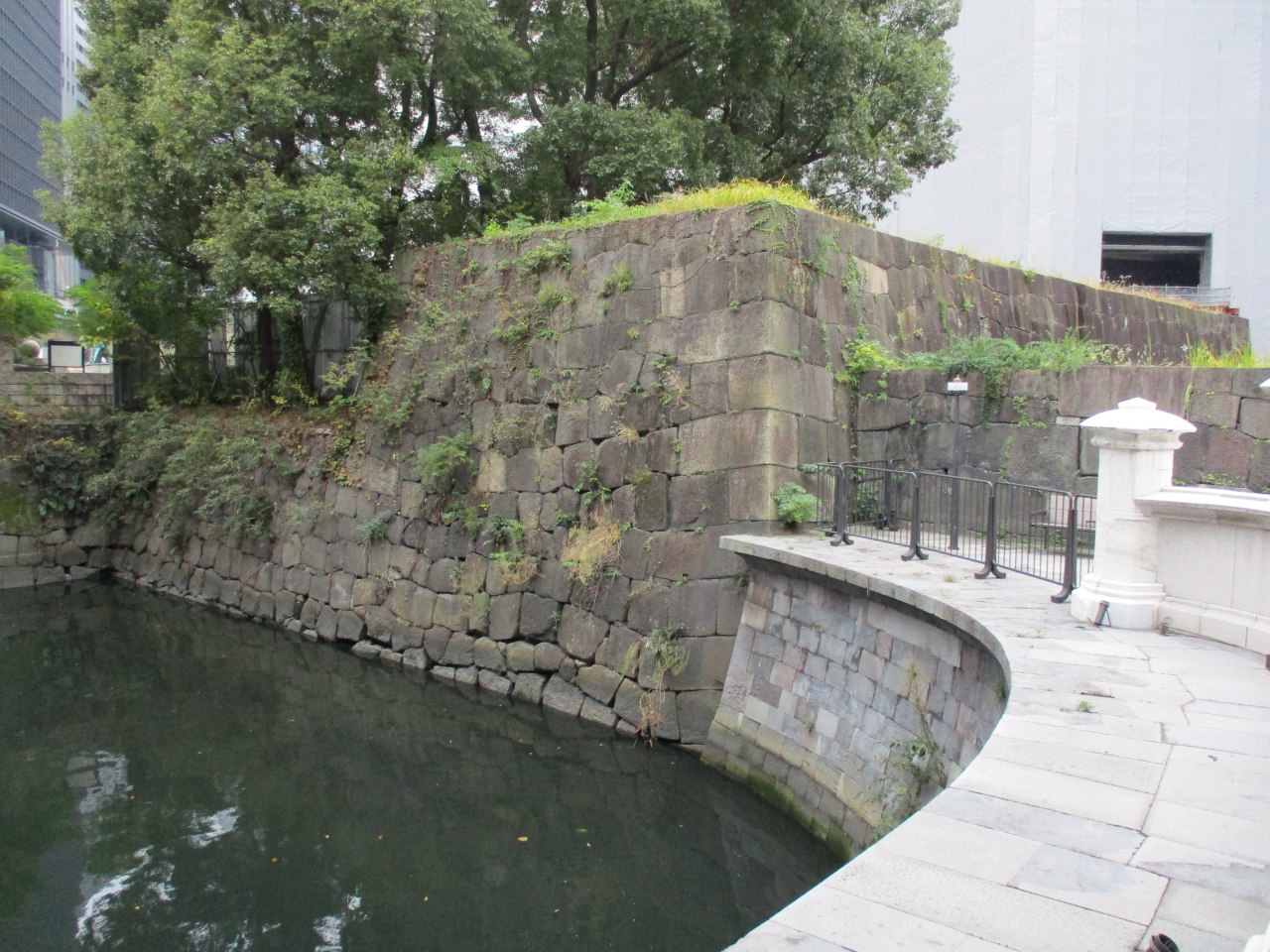 常盤橋近くまで行った時に、掘割となる場所に江戸城の門が建てられていた石垣が残されていました。どっしりとした石垣が両サイドを固めていて、ここに昔は大きな門があって、武士が出入りをしていたことを物語っていて、とても良かったです。
