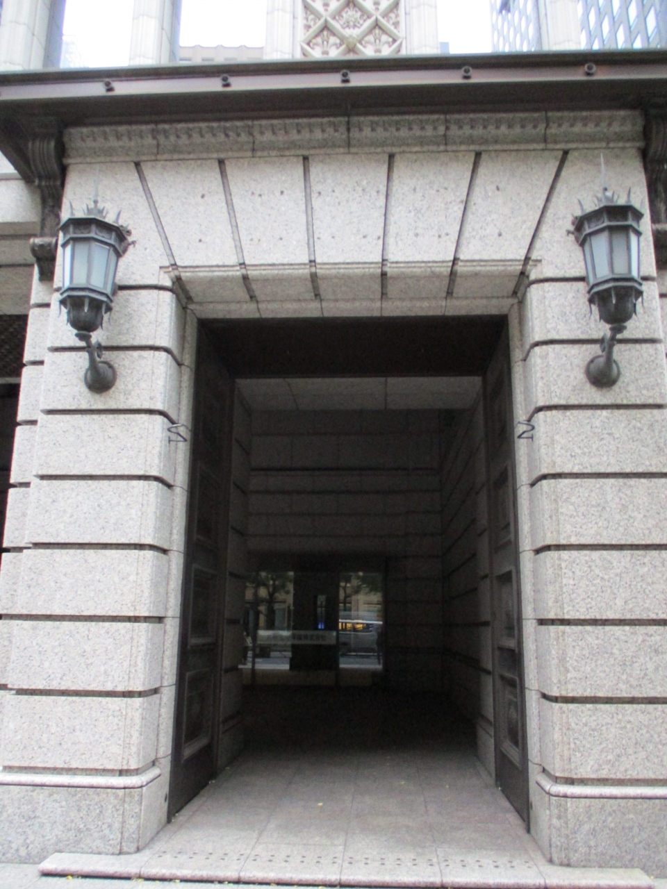 地下鉄大手町駅から地上に上がる時、ちょうど大手町野村ビルの前に出ました。昔の石造りの外観を残しながら、近代的なオフィスビルになっていて、景観を大切にしていてとても良いと思いました。入口の門灯もとてもレトロな雰囲気でした。