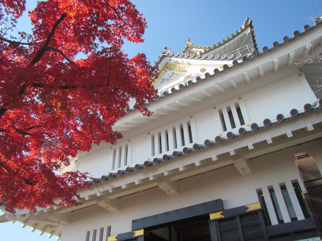 天守閣は入場料¥200円で、2021年11月現在、新型コロナの影響で入場前に氏名や連絡先の記入が必要です。コンクリート造りなところが残念ですが、エレベーターなどは無く、屋外の記名場所から13段(天守閣に至るまでも階段を何段も登りますが…)、4階の最上階に至るまでも17段、16段、19段の階段をそれぞれ自分の足で登ります。