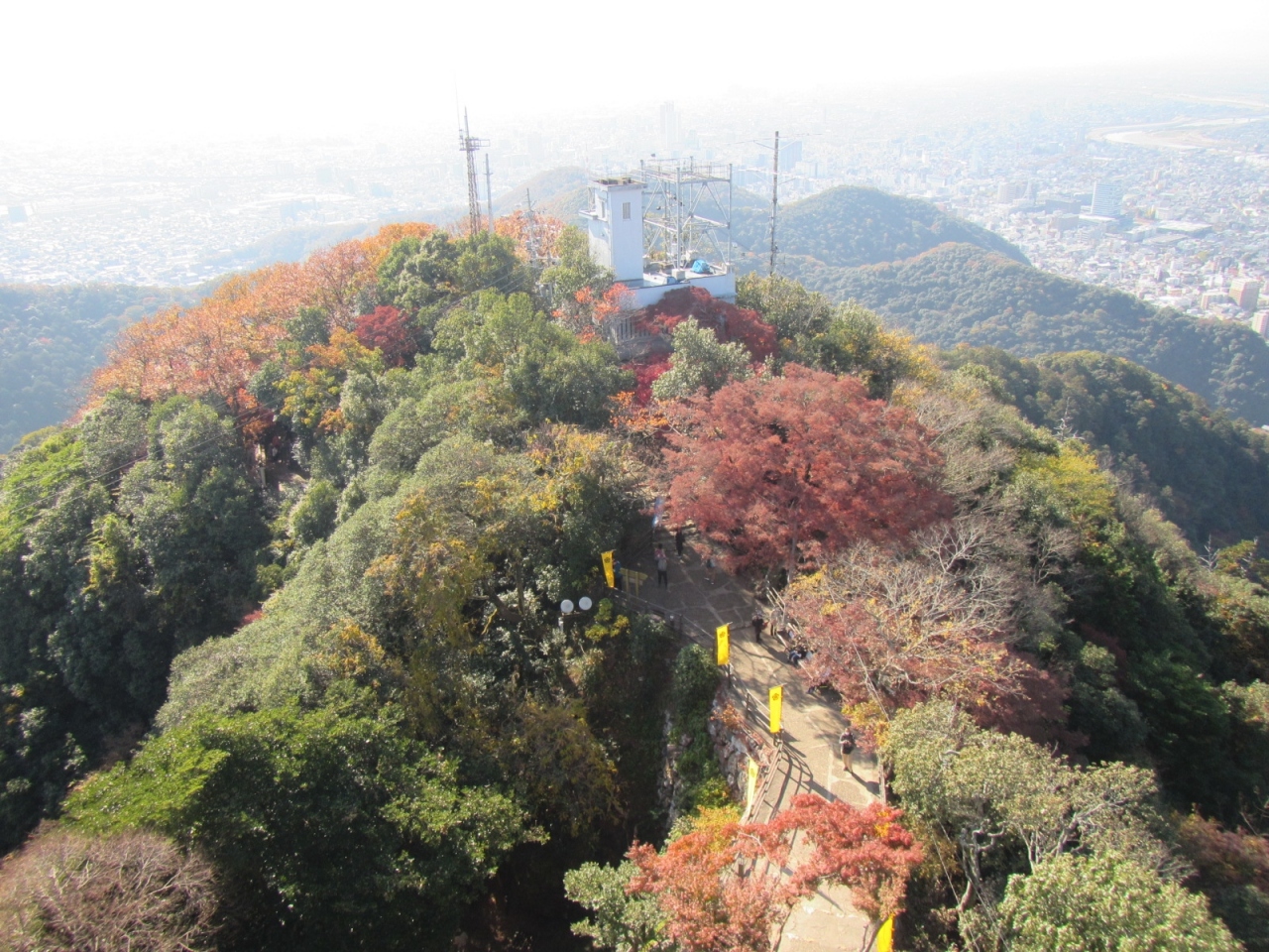昔の城への大手道だという七曲り登山道が登りやすくおススメで、所要時間約1時間・1.9kmだそうです。できればスニーカーなどで登るのが良いですが、ヒールのある靴でなければ登ることができます。非舗装の2、3m幅ほどの道で下の方は坂道が多いですが、上の方はほぼ階段となっており、路面は岩でゴツゴツしている箇所も局所的にありました。休日などはお年寄りのグループから部活の生徒達、山ランの人など、多くの人達がゾロゾロと上り下りしていました。