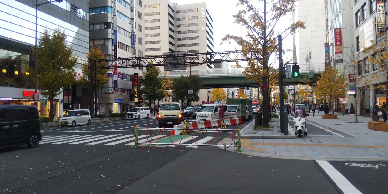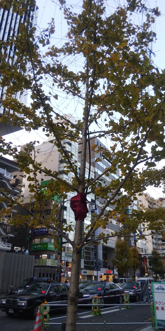 12月1日に行きましたので、まだまだ銀杏が残っていてキレイでした。御堂筋は大阪のメインストリートだけに、秋には銀杏並木、冬にはライトアップが施され、えぇ感じに彩られます。最近はなんば駅前あたりを歩行者天国にしたりしています。
