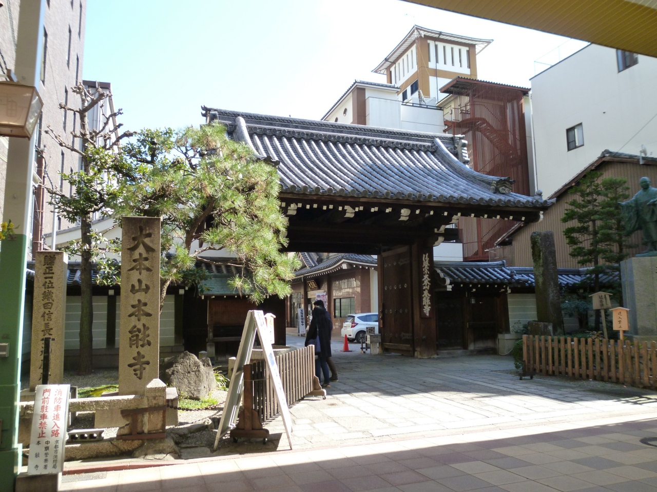 本能寺は、中京区下本能寺前町にある法華宗本門流の大本山の寺院です。当初は「本応寺」という寺号で、応永22年(1415年)、京都油小路高辻と五条坊門の間に、日隆上人によって創建されたものでした。その後1429年(永享元年)、内野に再建した際、本能寺と寺号を改めています。