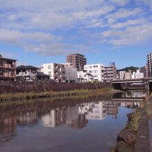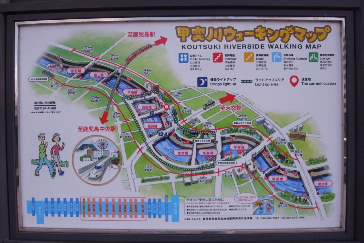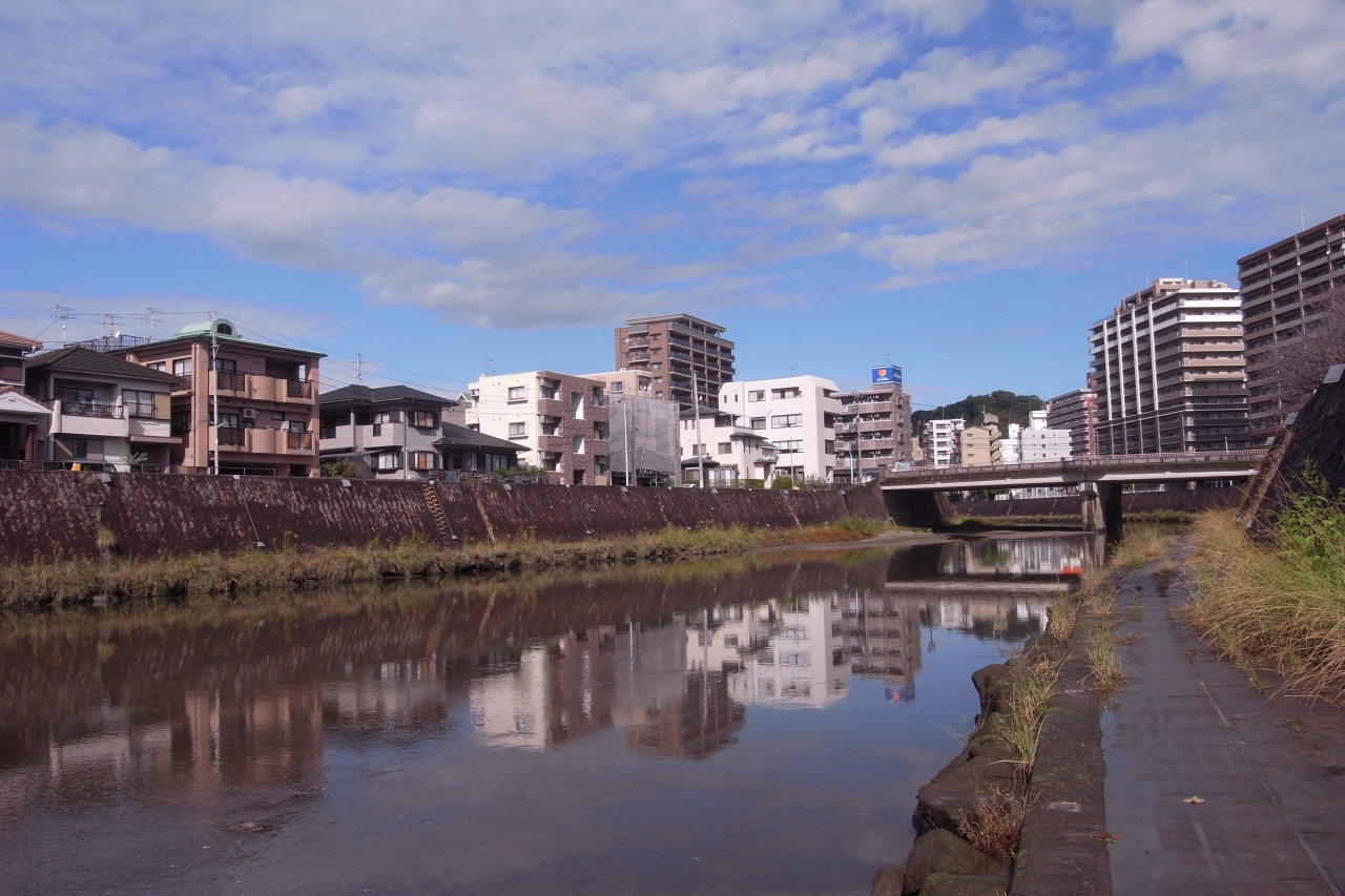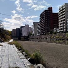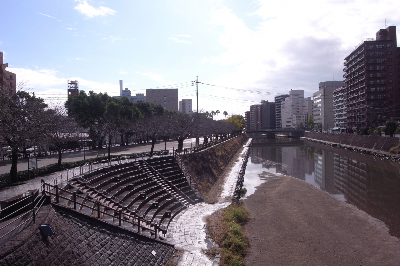 甲突川左岸緑地(市民広場)が在り、河川左右をウォーキング出来ます。